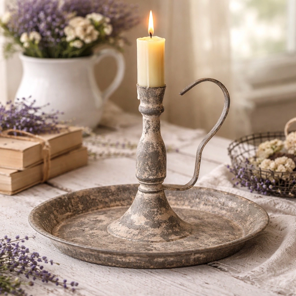 Elegante e ricco di fascino senza tempo, questo candelabro in metallo effetto anticato è un complemento d’arredo perfetto per creare atmosfere calde e romantiche in stile provenzale.