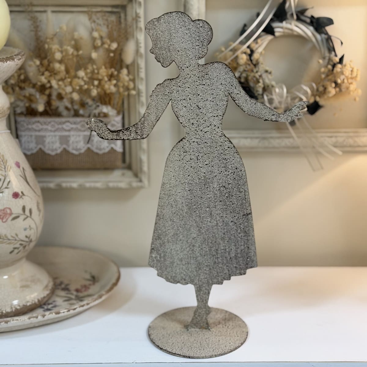 Silhouette in metallo con fiore decorativa.